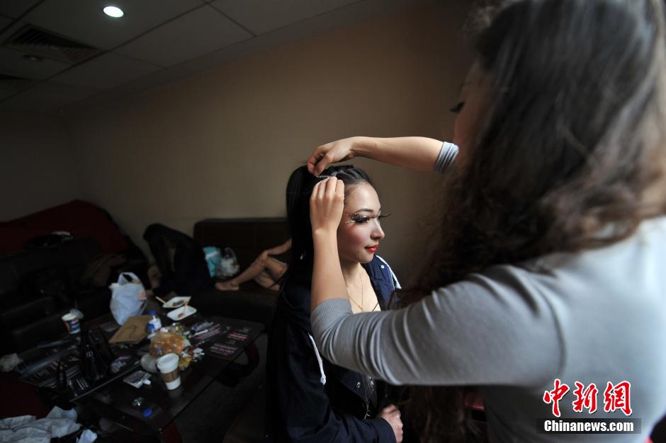 Contestants do warm-up exercises backstage. (Chinanews/Jin Shuo)