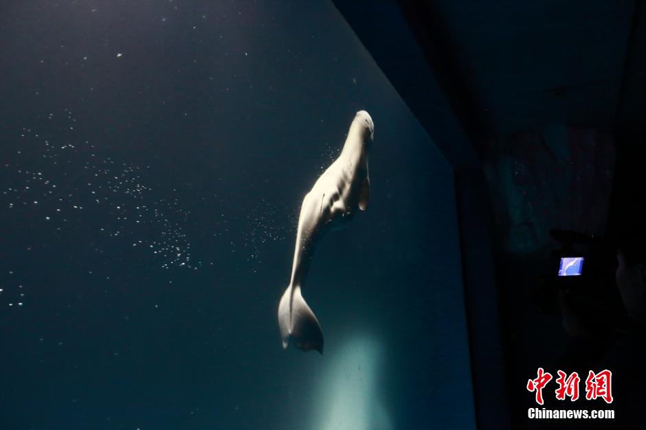 A white whale named "Zhuo Ya" gives birth to a baby in Changsha Aquarium in Changsha, central China's Hunan province on Oct. 29, 2014. The whole process had been recorded by the camera. (CNS/Huang Wei)