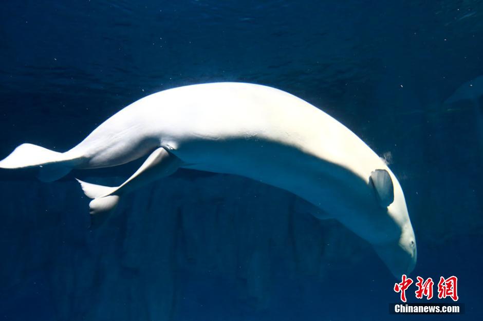 A white whale named "Zhuo Ya" gives birth to a baby in Changsha Aquarium in Changsha, central China's Hunan province on Oct. 29, 2014. The whole process had been recorded by the camera. (CNS/Huang Wei)