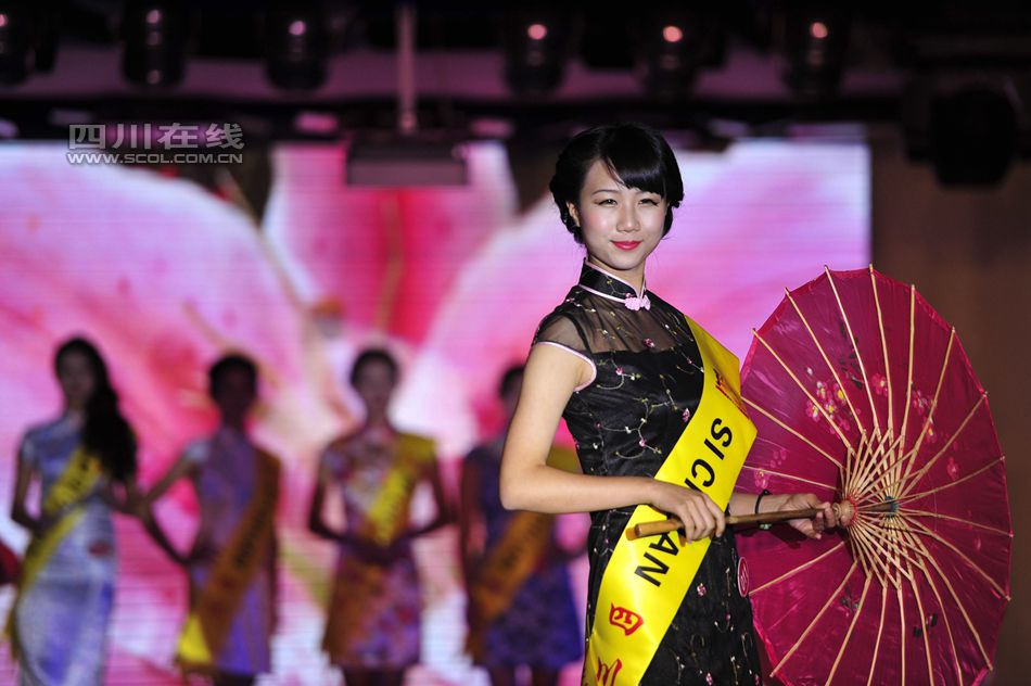 The semifinal of 2014 Miss Sichuan Tourism is held in Chengdu, southwest China's Sichuan province on Oct.27, 2014. Competing in several parts including Cheongsam show, swimming suits show, the top three finishers will be qualified for 2014 Miss China Tourism. (Scol.com.cn/Wu Dan)