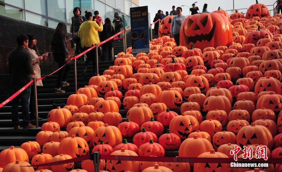More than 500 pumpkin lamps are used to decorate a shopping mall in northeast China’s Shenyang City. (CNS/Yu Haiyang)