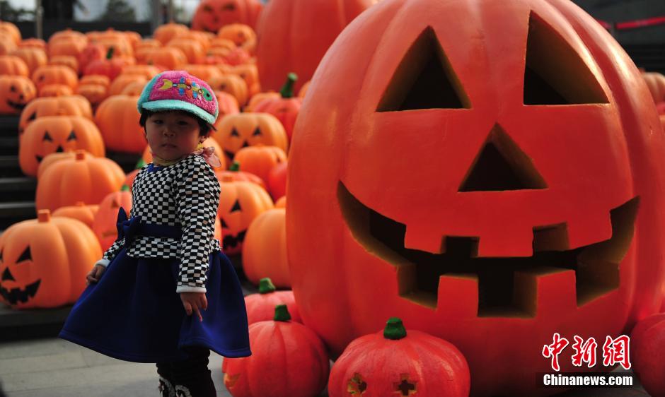 More than 500 pumpkin lamps are used to decorate a shopping mall in northeast China’s Shenyang City. (CNS/Yu Haiyang)