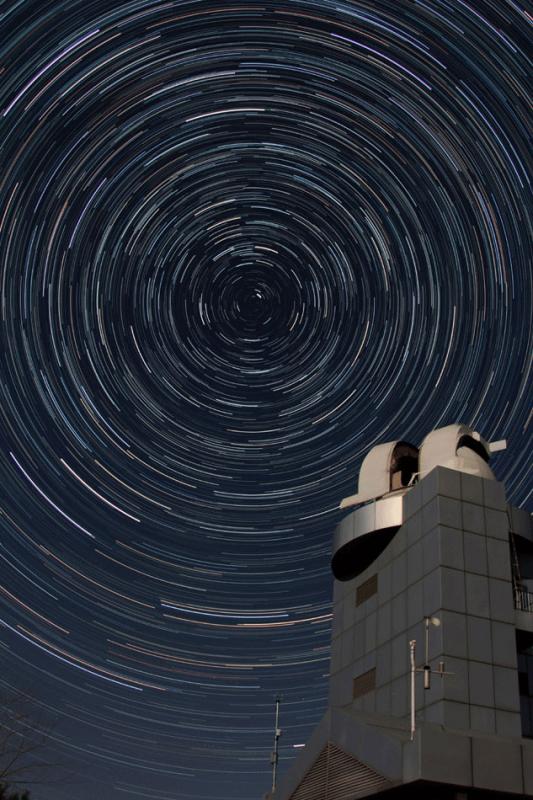 If you continuously look at the night sky for several hours, observing the trajectory of a single star, you will see this spiral shape created by LAMOST, China’s largest telescope located in the Xinglong Station, in Northern China’s Hebei province. [Photo: CRIENGLISH.com] |