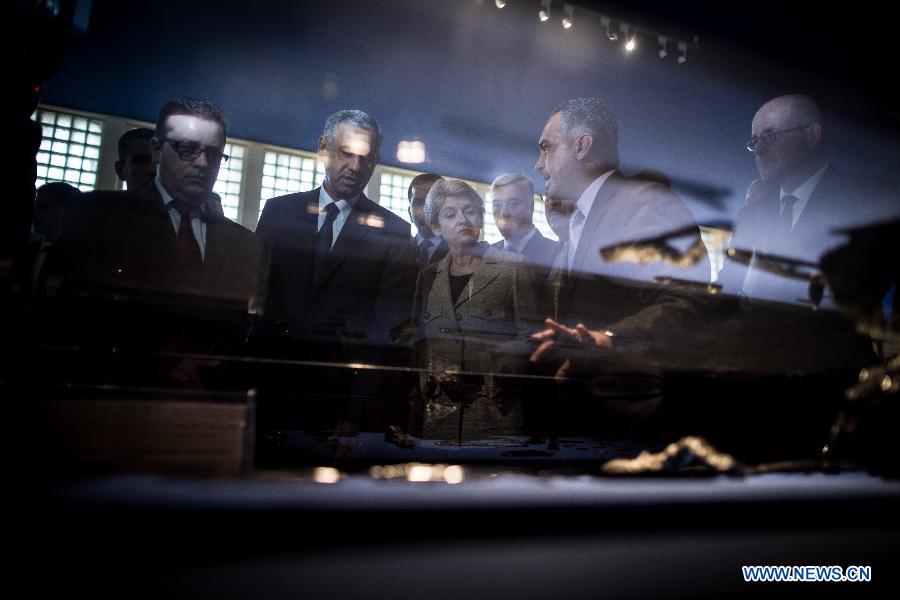 Irina Bokova (C), Director General of UNESCO, visits the Iraqi National Museum in the Iraqi capital of Baghdad on Nov. 2, 2014. Bokova on Sunday voiced support for the Iraqi government against "barbaric" destruction of the Iraqi cultural heritage, as the Islamic State (IS) militant group destroyed several ancient sites in the country. (Xinhua/Chen Xu) |