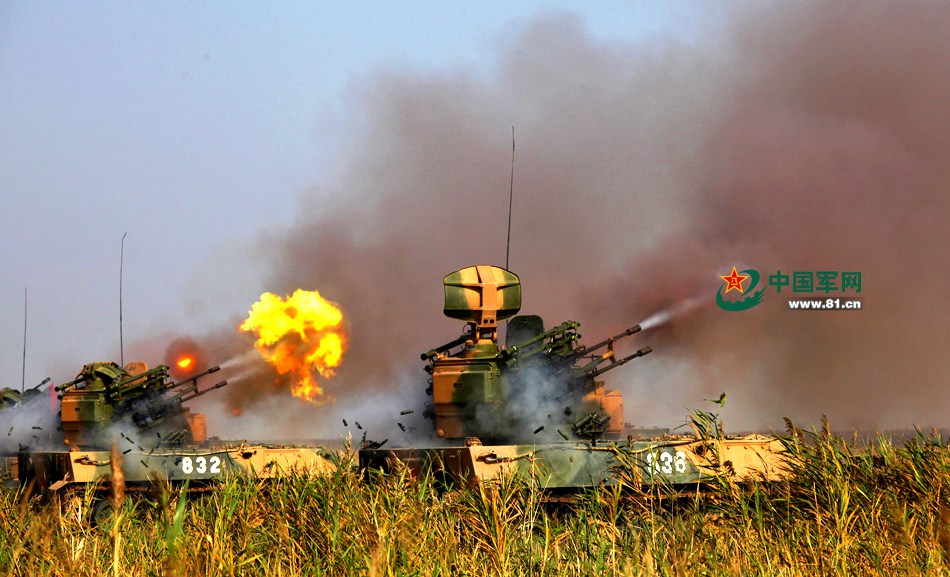 An anti-aircraft regiment from Nanjing Military Region conducts antiaircraft artillery shooting drill on Oct. 25, 2014. (Chinamil.com.cn/Luo Xin)