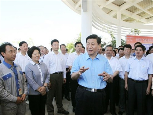 Photo taken on Sept. 5, 2010 shows Xi Jinping, then member of the Standing Committee of the Political Bureau, member of the Secretariat of the Communist Party of China and Vice President of China, inspecting the Ningde Nuclear Power Project. (Photo source: Xinhua) |
