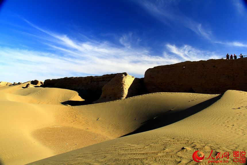 Heicheng city relic is located in Ejin Banner, north China’s Inner Mongolia Autonomous Region. It is the biggest and best-preserved ancient city relic along the Silk Road. The landmark building of the city is a 13-meter-high pagoda. Although part of the city has been covered by the sand, the city layout is still neat. (Photo source: people.cn) |
