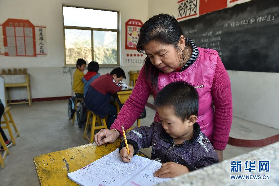 Li Jingming helps students with their studies on Oct. 22, 2014. (Xinhuanet/Zhan Yan)