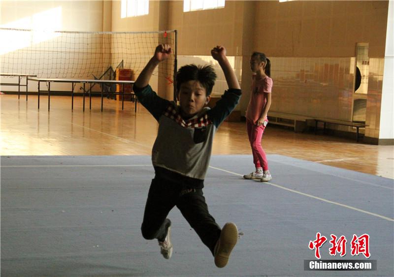 Ye Mengcheng practices basic moves of Chinese kung fu. (Chinanews/Lin Bo)