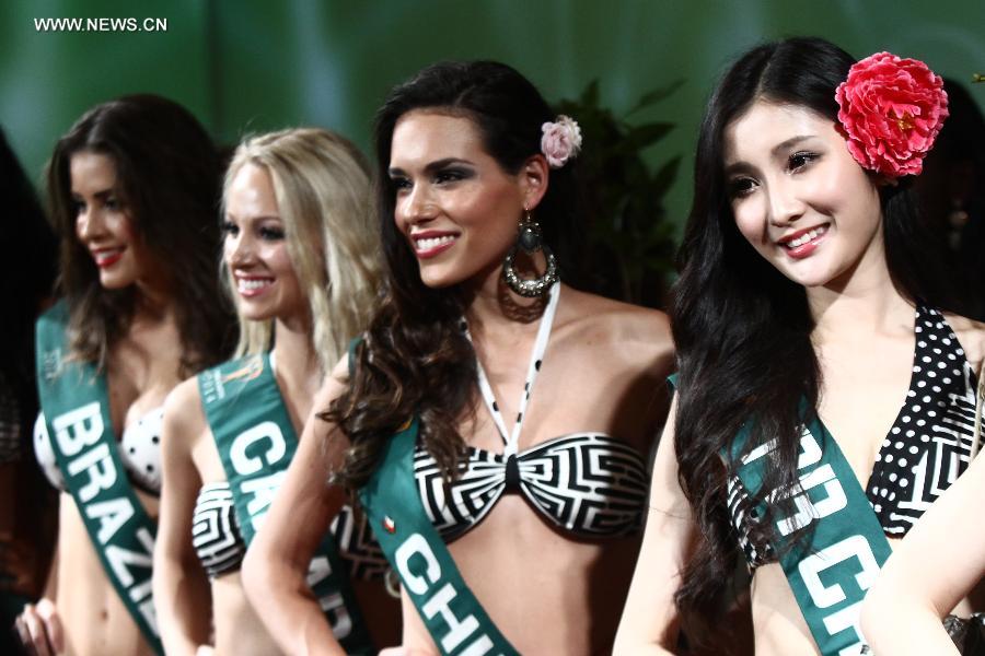 Contestants attend the Miss Earth 2014 pageant in Makati City, the Philippines, Nov. 10, 2014. A total of 86 contestants from all over the world took part in the competition. (Xinhua/Rouelle Umali)