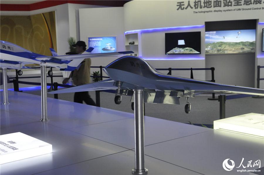 Model of the Harrier III Long-endurance All-purpose UAV System displayed at the 10th China International Aviation & Aerospace Exhibition (Airshow China 2014) scheduled from Nov. 11 to 16 in Zhuhai, south China’s Guangdong province. (People’s Daily Online/Sun Zhao) |