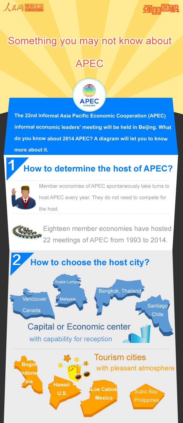 Editor's note: The 22nd informal Asia Pacific Economic Cooperation (APEC) informal economic leaders' meeting will be held in Beijing. What do you know about 2014 APEC? A diagram will let you to know more about it.