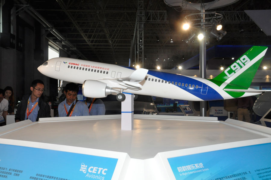 Photo taken on Nov. 10, 2014 shows exhibitors getting ready for the 10th China International Aviation & Aerospace Exhibition (Airshow China 2014) scheduled from Nov. 11 to 16 in Zhuhai, south China’s Guangdong province. (People’s Daily Online/ Sun Zhao)