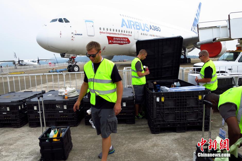 Airshow China 2014, featuring fighters, AEWs, transport aircraft, drones, and equipment for defense like radars, opens to media in Zhuhai, south China's Guangdong province on Nov. 10, 2014. (CNS/Chen Wen)