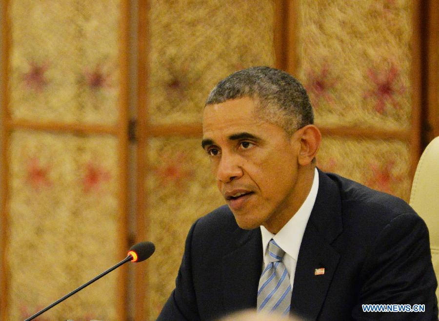 U.S. President Barack Obama speaks at the 2nd ASEAN-U.S. Summit in Nay Pyi Taw, Myanmar, on Nov. 13, 2014. The 2nd ASEAN-U.S. Summit was held here on Thursday. (Xinhua/Liu Yun)