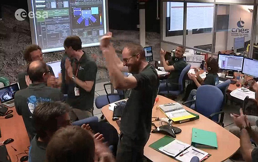 The staff celebrate the successful landing of the Philae. (Photo/ NASA)