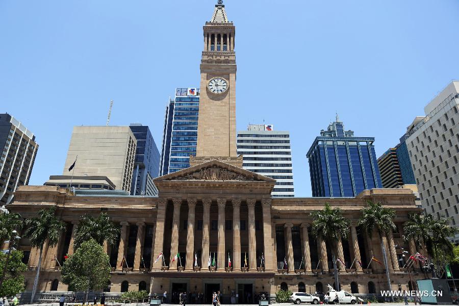 Photo taken on Nov. 14, 2014 shows the city hall of Brisbane, Australia. The G20 summit will be held on Nov. 15-16 in Brisbane. (Xinhua/Zhao Danhui)