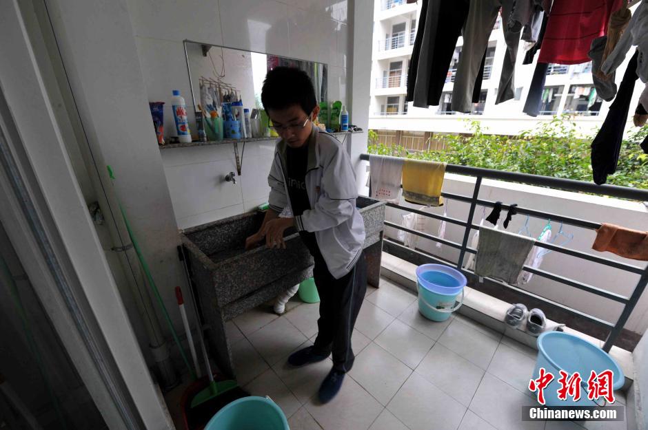 Lai Zhiqiang can take care of himself to do some simple things, Nov. 11, 2014. (CNS/Zhang Bin)