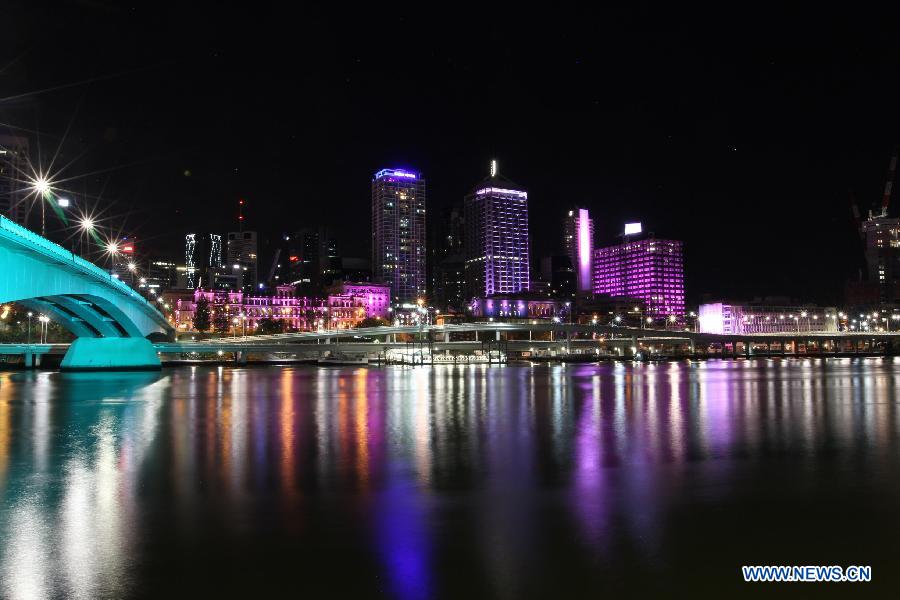 Photo taken on Nov. 14, 2014 shows a light show in Brisbane, Australia. The G20 Summit is to be held in Brisbane on Nov. 15 to Nov. 16. (Xinhua/Jin Linpeng)