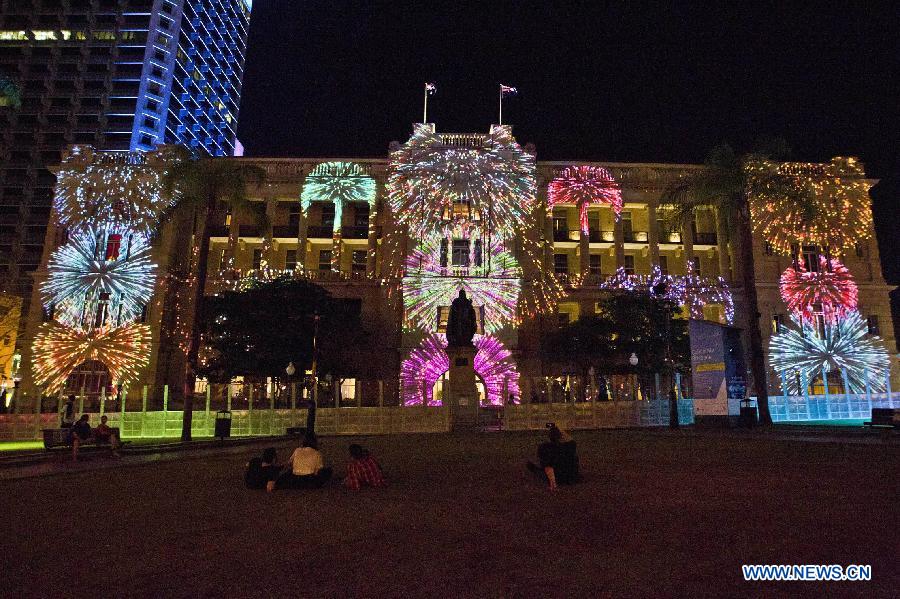 Photo taken on Nov. 14, 2014 shows a light show in Brisbane, Australia. The G20 Summit is to be held in Brisbane on Nov. 15 to Nov. 16. (Xinhua/Jin Linpeng)