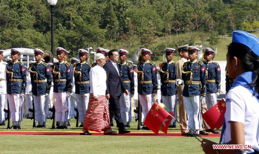 Chinese Premier Li Keqiang attends a welcome ceremony held by Myanmar President U Thein Sein prior to their talks in Nay Pyi Taw, Myanmar, Nov. 14, 2014. (Xinhua/Ju Peng)