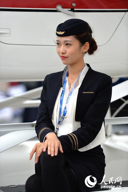 Stewardesses perform an uniform show at the Airshow China, Nov. 13, 2014. (People's Daily Online/Weng Qiyu)