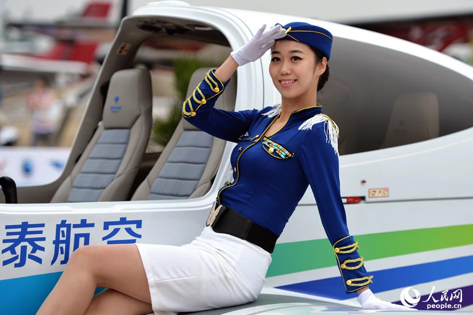 Stewardesses perform an uniform show at the Airshow China, Nov. 13, 2014. (People's Daily Online/Weng Qiyu)