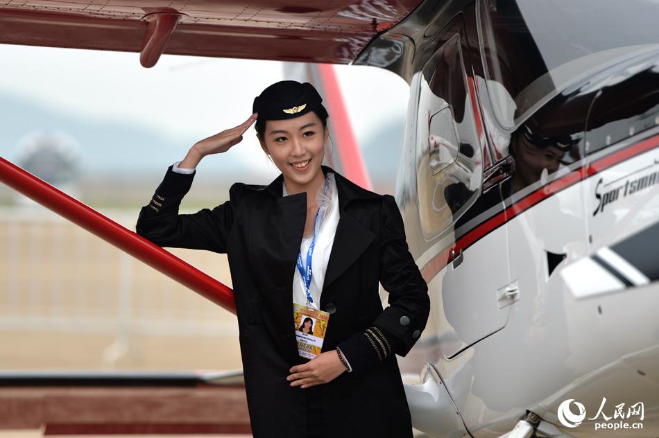 Stewardesses perform an uniform show at the Airshow China, Nov. 13, 2014. (People's Daily Online/Weng Qiyu)
