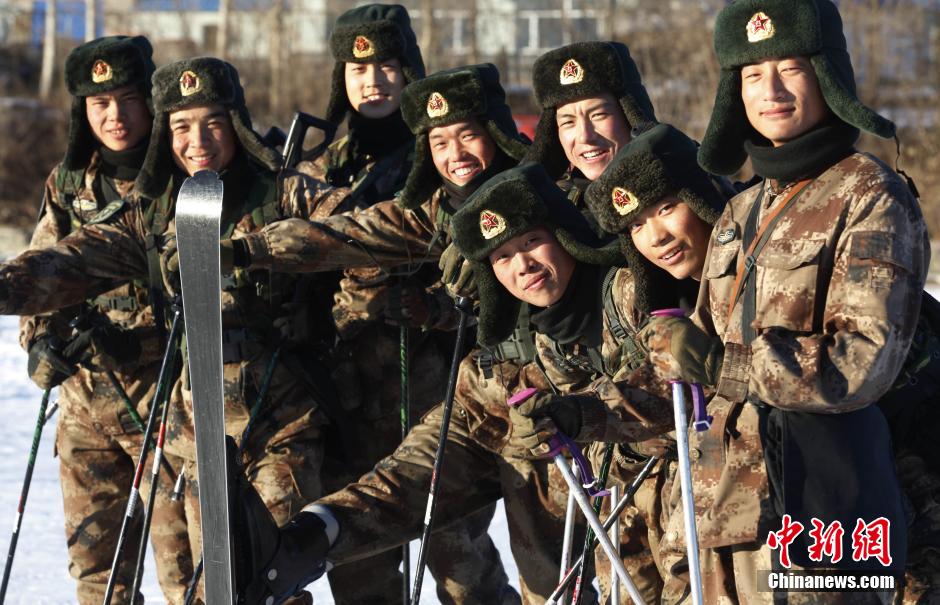 Soldiers from border defense regiments of Shenyang military region have skiing exercise braving minus 20 degree temperature. (CNS/Wei Jianshun)