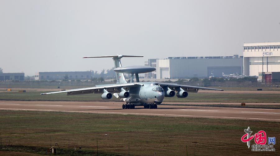 China’s self-developed airborne early warning and control system KJ-2000 taxis before performing aerobatics at the 2014 Zhuhai Airshow. (Photo/China.org.cn)