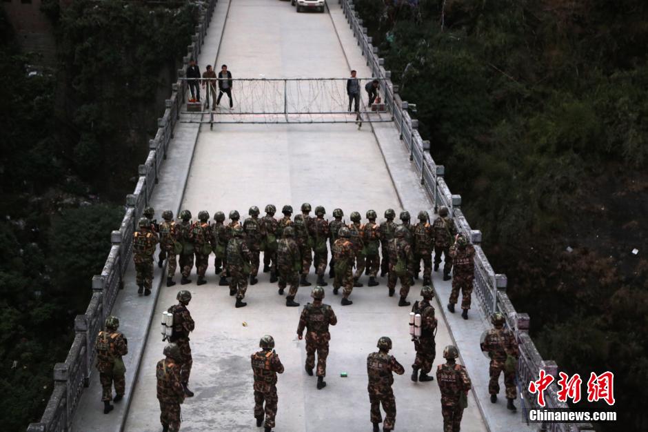 On Nov. 16, 2014, the frontier police force in Tibet and the armed police and fire department of Nepal conduct a joint exercise at the Sino-Nepal Friendship Bridge. The exercise focused on dealing with emergency situations such as attacks at the checkpoints. The joint exercise effectively improved the cooperation ability between the armed police of the two countries. (Chinanews/Zheng Yongbo)