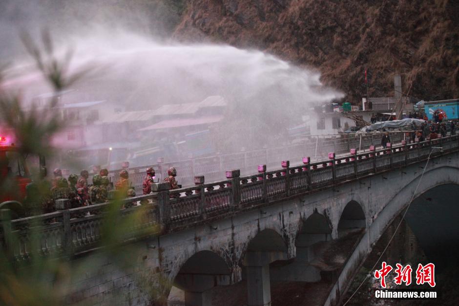 On Nov. 16, 2014, the frontier police force in Tibet and the armed police and fire department of Nepal conduct a joint exercise at the Sino-Nepal Friendship Bridge. The exercise focused on dealing with emergency situations such as attacks at the checkpoints. The joint exercise effectively improved the cooperation ability between the armed police of the two countries. (Chinanews/Zheng Yongbo)