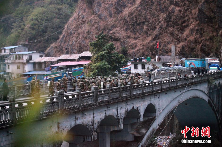 On Nov. 16, 2014, the frontier police force in Tibet and the armed police and fire department of Nepal conduct a joint exercise at the Sino-Nepal Friendship Bridge. The exercise focused on dealing with emergency situations such as attacks at the checkpoints. The joint exercise effectively improved the cooperation ability between the armed police of the two countries. (Chinanews/Zheng Yongbo)