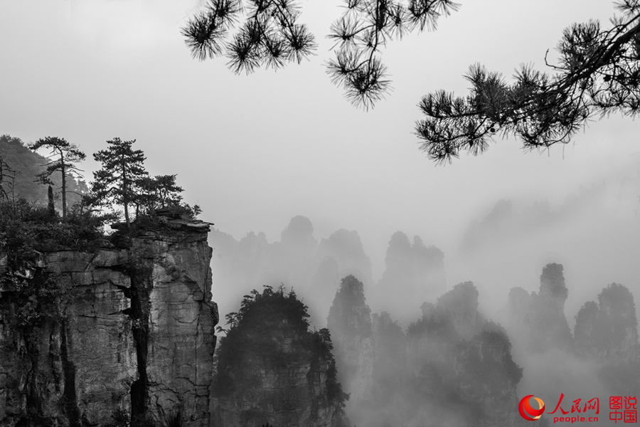 Located in northwest Hunan Province, Zhangjiajie National Forest Park is a famous tourist attraction. The unique landscape is like a Chinese ink painting in black and white. (Photo source: people.cn)