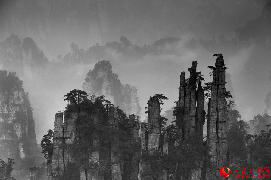 Located in northwest Hunan Province, Zhangjiajie National Forest Park is a famous tourist attraction. The unique landscape is like a Chinese ink painting in black and white. (Photo source: people.cn)