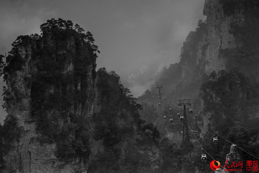 Located in northwest Hunan Province, Zhangjiajie National Forest Park is a famous tourist attraction. The unique landscape is like a Chinese ink painting in black and white. (Photo source: people.cn)