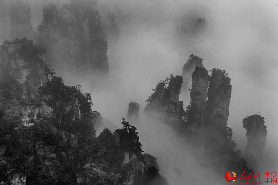 Located in northwest Hunan Province, Zhangjiajie National Forest Park is a famous tourist attraction. The unique landscape is like a Chinese ink painting in black and white. (Photo source: people.cn)
