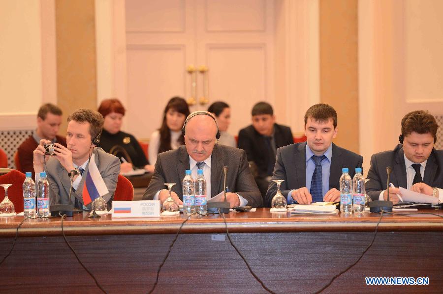 Russian delegates attend the Second Conference on Cooperation against International Terrorism and Extremism between SCO Member States and Observer States, in Tashkent, capital of Uzbekistan, on Nov. 18, 2014. (Xinhua/Sadat)