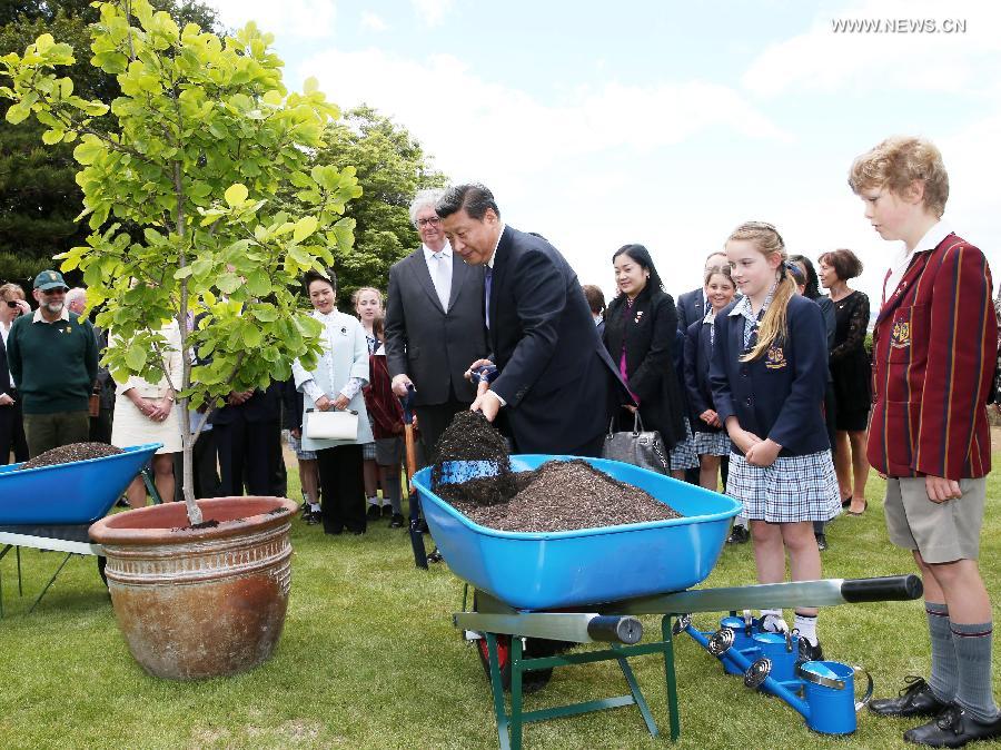 Chinese president plants tree with primary school students in Tasmania state, Australia (2)