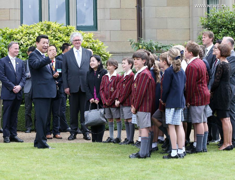 Chinese President Xi Jinping talks with students of a primary school in Tasmania state, Australia, Nov. 18, 2014. (Xinhua/Yao Dawei)