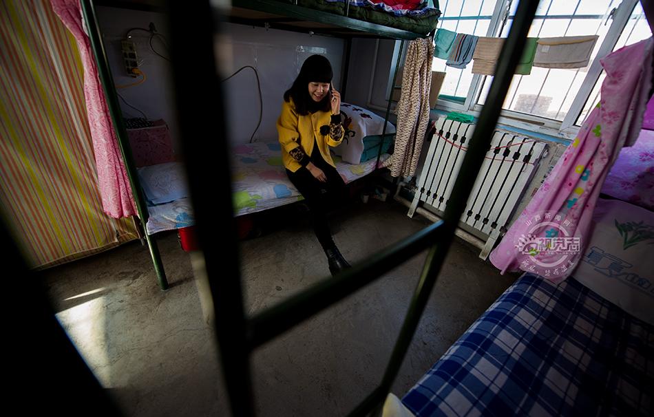 Yin Li calls her husband after she is off work. (Shanxi News/Liu Yu)