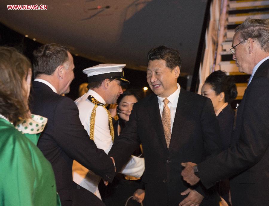 At the invitation of New Zealand Governor-General Jerry Mateparae and Prime Minister John Key, Xi began his first state visit to New Zealand after he took office as president last year.