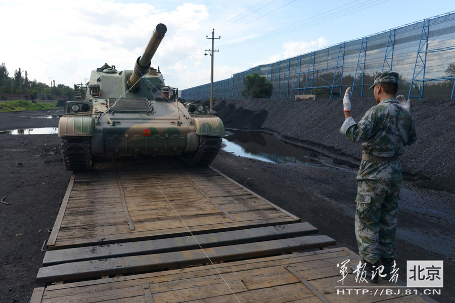 In this autumn, a field artillery brigade of the 27th Group Army of the PLA maneuvers from northwest China to the beach of the Bohai Sea to conduct a live-fire drill and successfully hit a dozen of mobile targets on the sea. (BJ.81.cn/Chang Tianlong) |
