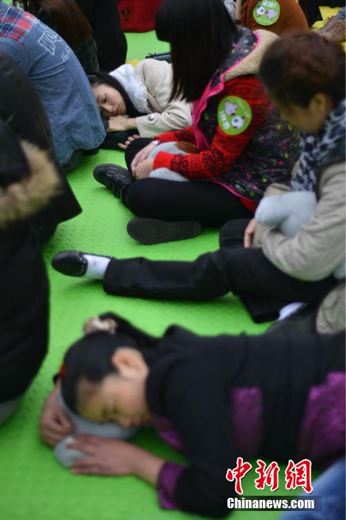 On Nov. 18, 2014, about 200 people participate in China’s first “Daydreaming Competition” held in Chengdu, southwest China’s Sichuan province. The participants are required to daydream in two hours without moving, laughing or falling asleep, otherwise they will be eliminated. The oldest participant is 70 years old, while the youngest is no more than 10 years old. (Chinanews/Zhang Liang)