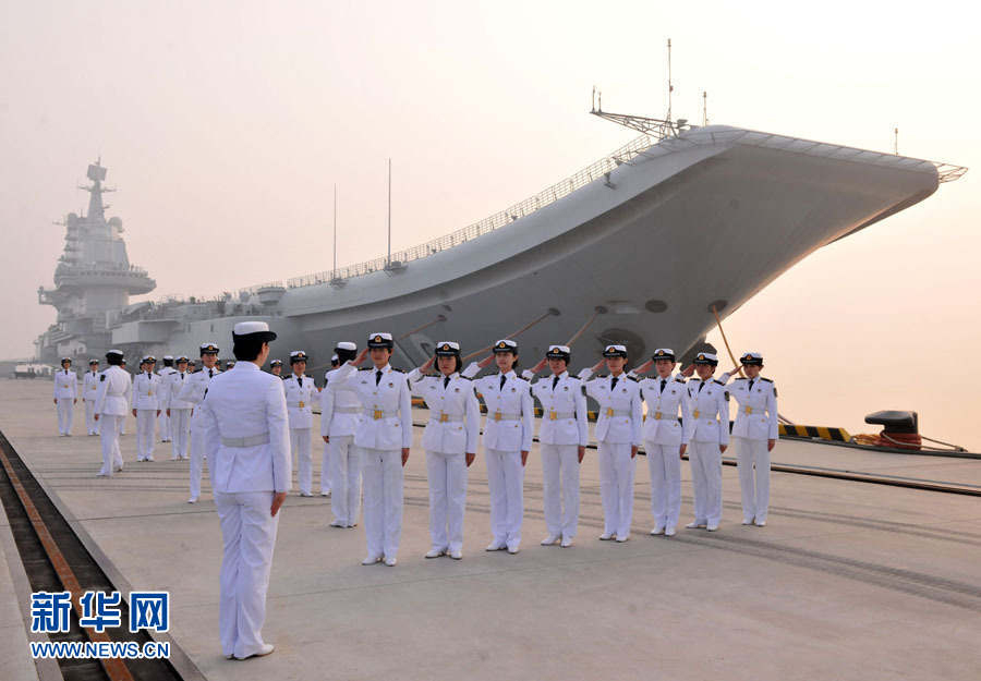 Female soldiers of China's first aircraft carrier are in training. (Photo/ Xinhua)