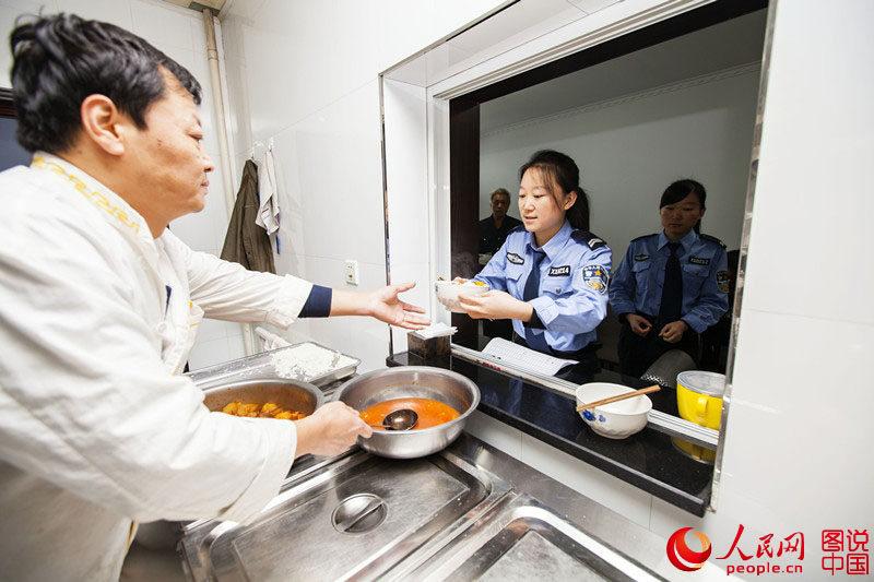 The sisters have lunch in the dining hall. (Photo/people.cn)