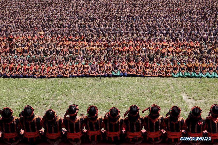 People perform Saman dance in Aceh, Indonesia, Nov. 24, 2014. More than 5,000 people participated in the mass Saman dance here on Monday. Indonesia's Saman dance was recognized as the world's intangible cultural heritage by the United Nations Educational, Scientific and Cultural Organization (UNESCO). (Xinhua/Junaidi) |