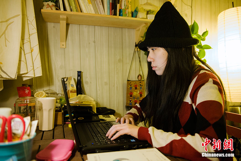 Jing Jing, an artistic female youth in entertainment circle. Her room is full of artistic books, green plants etc. (CNS/Li Qing)