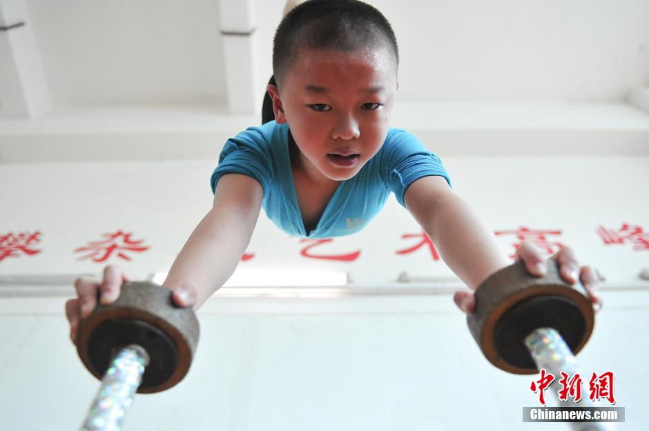Li Yinghao, 9, has practiced acrobatics for two years. (CNS/Hong Jianpeng)