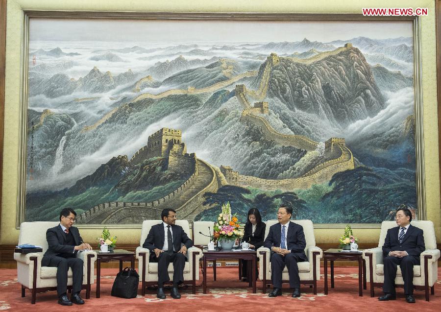 Zhao Leji (2nd R), a member of the Political Bureau of the Communist Party of China (CPC) Central Committee and head of the Organization Department of the CPC Central Committee, meets with delegates of a Singaporean senior official delegation in Beijing, capital of China, Nov. 24, 2014. (Xinhua/Wang Ye)